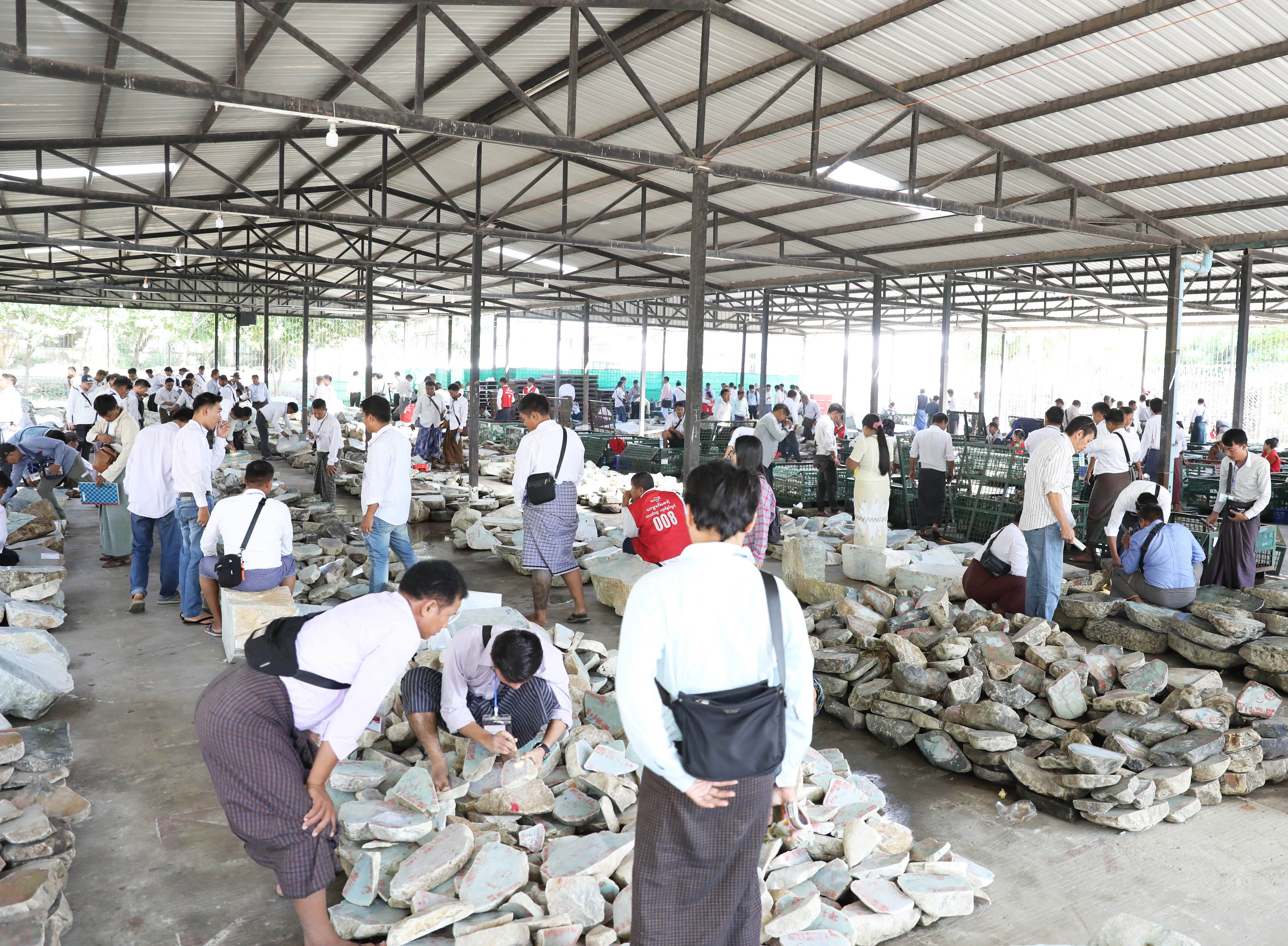 ပြပွဲဒသမနေ့တွင် ရောင်းချမည့် အုပ်စု (စီ) မှ ကျောက်စိမ်းအတွဲ အမှတ် (၄၄၀၁) မှ (၅၀၈၅) အထိကို ပြည်တွင်း၊ ပြည်ပရတနာကုန်သည်များက ကြည့်ရှုစစ်ဆေးကြပြီး ဈေးနှုန်းပေးသွင်းလွှာများကို သက်ဆိုင်ရာ တင်ဒါပုံးများအတွင်းသို့ ထည့်သွင်းကြသည်။